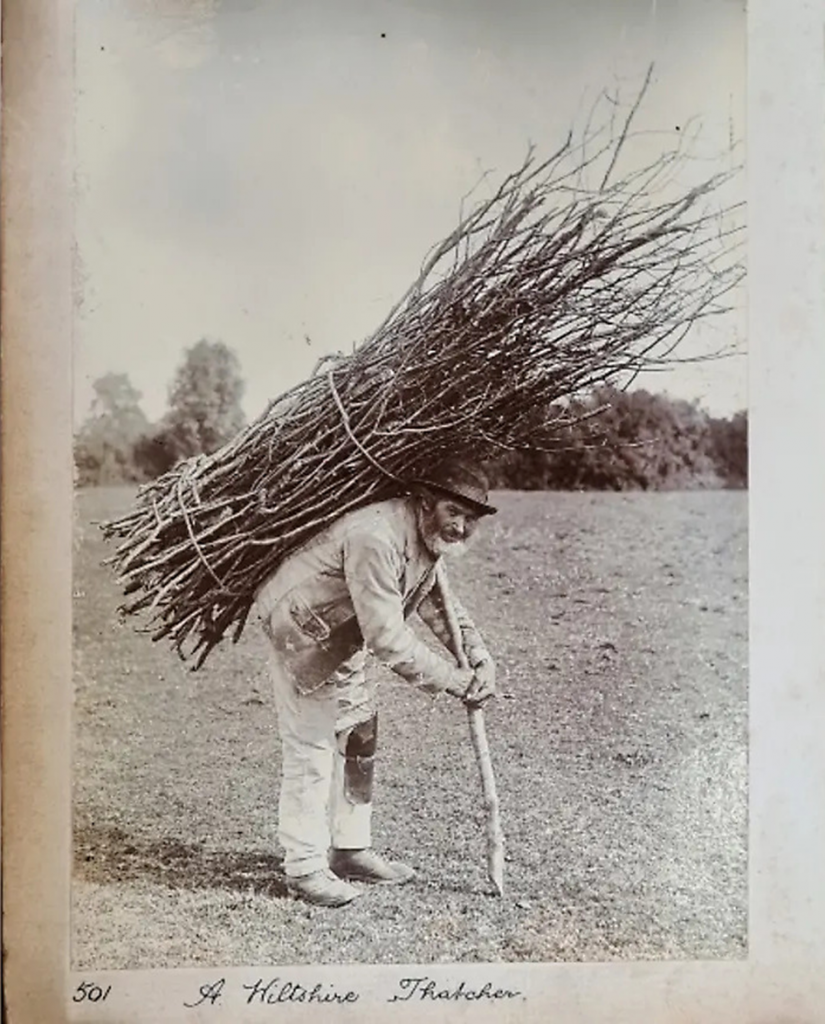 Bei der Figur handelt es sich höchstwahrscheinlich um Lot Long, einen Thatcher aus Mere in Wiltshire, der 1892 von Ernest Farmer fotografiert wurde. Ein Thatcher ist ein Dachdecker, der die Dächer aus Schilf und Stroh deckt.