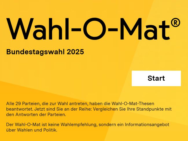 Seit dem 06.02.2025 ist der Wahl-O-Mat der Bundeszentrale für politische Bildung wieder freigeschaltet.