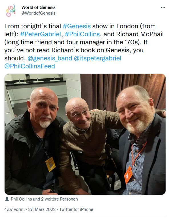 Am 26. März 2022 erlebten die Fans in der Londoner O2-Arena das letzte Konzert der Gruppe wie Phil Collins erklärte: