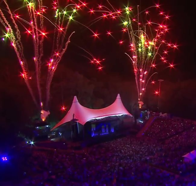 Insgesamt ein sehr überzeugender Auftritt, mit einem tollen, sehr gemischten Publikum, vor der immer wieder imposanten Kulisse der Berliner Waldbühne an einem herrlichen Sommerabend samt Feuerwerk zum Abschluss, über das sich Clueso total freuen konnte.