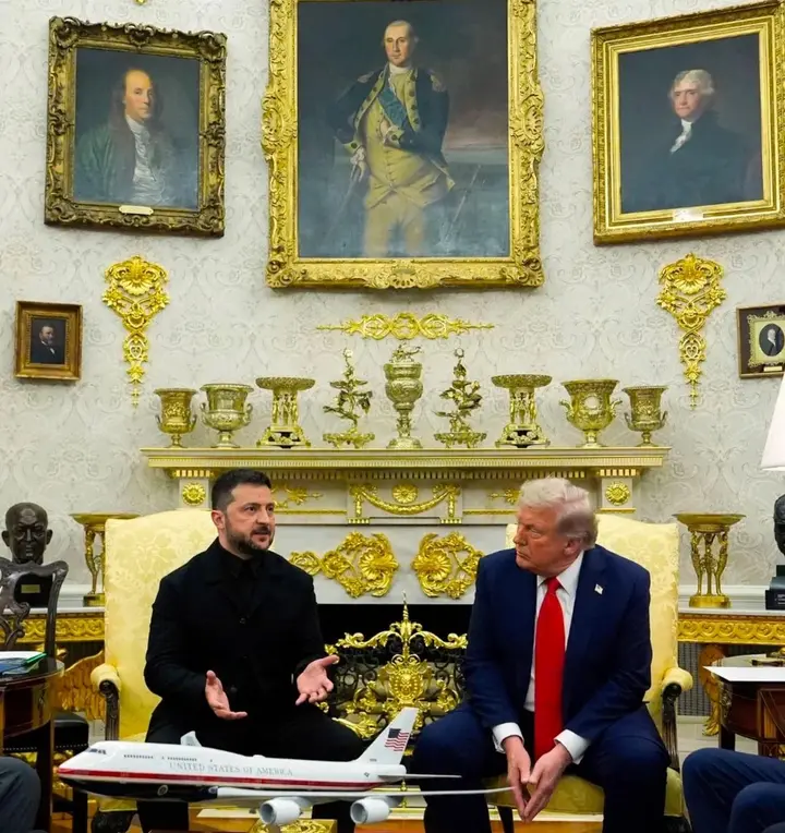 Sehen Sie sich nur an, wie widerlich Trump das historische Weiße Haus verändert hat. Es ist jetzt eine vulgäre, mit Blattgold verzierte und protzige Umkleidekabine für Profi-Wrestler. Ich kann es kaum erwarten, dass auch noch ein UFC-Kampf auf dem Rasen vor dem Haus stattfindet. Er hat den Film „Idiocracy“ fast vollständig verwirklicht. Sehen Sie sich seinen widerlichen Geschmack an. Würden Sie diesem Betrüger überhaupt einen Gebrauchtwagen abkaufen, geschweige denn ihm die Nuklearcodes geben? Eine vergoldete Trump-Bibel würde perfekt auf diesem Kaminsims aussehen, mit einem Paar Trump-Schuhen auf jeder Seite, nicht wahr? Was für eine Blamage für die amerikanische Geschichte. Auf diesem Foto ist auch ein ECHTER Staatschef in einem schwarzen Anzug zu sehen.